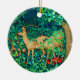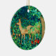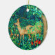 Ornament in einem William Morris Tapestry-Design Hirsche in einem fantasievollen Waldambiente - hellgesprenkeltes Hirsch in einem üppig blauen und grünen Hintergrund von Blätter und Blume, mit roten Tulpen versehen