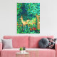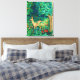 Gemauerte Leinwände in einem William Morris-Wandteppich-Design von Hirsch in einem Fantasy-Wald - hellgesprenkeltes Hirsch in einem üppig blauen und grünen Hintergrund von Blätter und Blume, mit roten Tulpen versehen