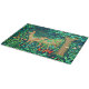 Die Tafel in einem William Morris Tapestry-Design in einem Fantasy-Wald-Ambiente - hellgesprenkeltes Hirsch in einem üppigen, tiefblauen und grünen Hintergrund von Blätter und Blume, mit roten Tulpen versehen
