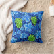 Kissen in einem Vintagen William Morris Tapestry Muster von hellgrünen Trauben vor einem Hintergrund von hellblauen bis tiefkobaltblauen Weinreben und Blätter, digital verbessert und farbig