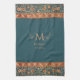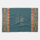 William morris-Muster, orientalisch-orangefarbene Blüte, persisch-türkisfarbenes aquamarines Blau, Vintage Hollandparkkunst, britisch-englische Künstlerin, Blume für Familiennamen, "art Deko custom monogram", "personalisiertes Küchentuch", "personal name art nouveau", "elegantes klassisches Geschirr", "add your own text"