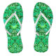 Flip-Flops in einem Vintagen William-Morris-Muster aus Hyazinthen, Tulpen und Blätter in Smaragdgrün und Jadegrün, mit Aqua-Weiß-Akzent, auf einem tiefen, grünen Hintergrund