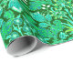 Umhüllungspapier in einem Vintagen William Morris-Muster aus Hyazinthen, Tulpen und Blätter, in Smaragdgrün und Jadegrün, mit Aqua und Weiß Akzent, auf einem tiefen grünen Hintergrund