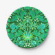 Papier-Teller in einem Vintagen William Morris-Muster aus Hyazinthen, Tulpen und Blätter, in Smaragdgrün und Jadegrün, mit Aqua-Weiß-Akzent, auf einem tiefen grünen Hintergrund