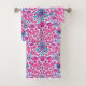 Handtuch-Set in Vintagem William Morris-Muster aus Hyazinthen, Tulpen und Blätter, in Fuchsientönen und sanftem Rosa, dunkelblau und türkisblau, auf weißem Hintergrund