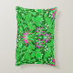 Akzente Kissen in einem Vintagen William-Morris-Muster aus Hyazinthen, Tulpen und Blätter, in Kalkgrün, mit Fuchsienfarben, Rosa und Weiß, auf tiefgrünem smaragdgrünen Hintergrund