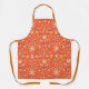 Schürze in einem Vintagen William-Morris-Muster aus Hyazinthen, Tulpen und Blätter, in Orange- und Safrantönen, mit weißem Akzent, auf einem sehr orangefarbenen Hintergrund