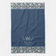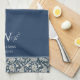 Weiße William-Morris-Muster, marineblaue Blütenblüte, geblümte Blume-Design, britisch-englische Künstlerin, traditionelle Familiennamen-Blume, "klassische, maßgeschneiderte Monogramm", "personalisiertes Küchentuch", "Wirble Wirbel", "elegantes, raffiniertes Geschirr", "Vintag fügen Sie Ihren eigenen Text hinzu"