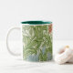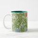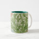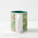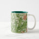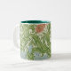 William Morris Iris Blume Foliage Birds Blue Green Pink Zwei-Tone-Kaffee-Tasse - Iris, das Bild, das dieses Produkt schmückt, wurde 1887 von John Dearle (1859-1932), einem talentierten Designer und Angestellten von William Morris (1834-1896), als Hintergrundbild geschaffen. Das Muster zeigt ein blättriges und blumengeschmücktes Design mit Iris-Blume und kleinen Vögeln.