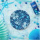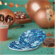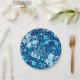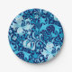 Papier-Teller in einem Vintagen William Morris-Blumendruck von stilisierten Lilien und Iren, digital verstärkt und farbig, in Himmelblau-Weiß-Tönen auf dunkelblauem indigoblauem Hintergrund