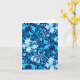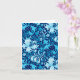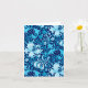 Karte in einem Vintagen William Morris Blumendruck stylisierter Lilien und Iren, digital verstärkt und farbig, in Himmelblau und Weiß auf dunkelindigoblauem Hintergrund, digital farbig und verstärkt