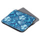 Die Computerhülle in einem Vintagen William Morris-Blumendruck aus stilisierten Lilien und Iren, digital verstärkt und farbig, in himmelblauen und weißen Farbtönen auf dunkelindigoblauem Hintergrund, digital farbig und verstärkt
