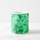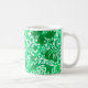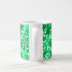 Kaffeemaschine in Vintager William Morris-Tasse, mit stylisierten Lilien und Iren, digital verstärkt und farbig, in hellen bis dunkelfarbenen Tönen, grün auf weißem Hintergrund