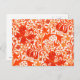 Postcard in einem Vintagen William Morris Blumendruck stylisierter Lilien und Iren, digital verstärkt und farbig, in Lichttönen bis tief Mandarin Orange auf weißem Hintergrund, digital farbig und verstärkt