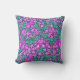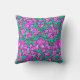 Kissen in einem William Morris, Jugendstil, textiler Druck von Reisen und Blätter, digital verstärkt und farbig, in sanften Orchideen und Türkis, auf einem tief amethystischen lila Hintergrund