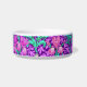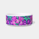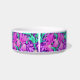 Eine Schüssel mit Haustieren in William Morris, Jugendstil, Textiliendruck von Reisen und Blätter, digital verstärkt und farbig, in sanften Orchideen und Türkis, auf einem tief amethystischen lila Hintergrund