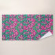 Handtuch-Set in einem William Morris, Jugendstil, Textiliendruck von Reisen und Blätter, digital verstärkt und farbig, in Fuchsia und Eispink, Pfauengrün und Weiß, auf einem lila Hintergrund