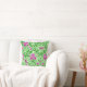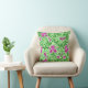 Kissen in einem William Morris, Jugendstil, Textilien von Reisen und Blätter, digital verstärkt und farbig, in magenta lila und orchid rosa, mit smaragdgrünen und limig grünen Blätter, auf pastellgrünem Hintergrund