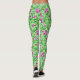 Leggings in William Morris, Jugendstil, Textilien aus Reisen und Blätter, digital verstärkt und farbig, in magenta lila und orchid rosa, mit smaragdgrünen und limig grünen Blätter, auf pastellgrünem Hintergrund