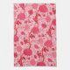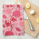 Handtuch in einem Kunst Williams Morris Nouveau Textilmuster - elegant, stylized, Chrysanthemen, Sonnenblumen und Blätter, im Pastell zum tiefen korallenroten rosa und korallenroten Rot, auf einem weißen Hintergrund