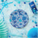 Teller im William Morris, Art Nouveau, Textilmuster - elegant, stilisiert, Chrysanthemen, Sonnenblumen und Blätter, in Türkis-, Kobalt- und Marinebtönen, auf weißem Hintergrund