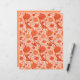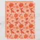 Papier in einem William Morris, Jakobsblütenmuster, Textilmuster - elegant, stilisiert, Chrysanthemen, Sonnenblumen und Blätter, in Weich-Korallenorange und Terrakotta/Rostorange, auf weißem Hintergrund
