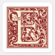 Ein dekoratives rotes antikes Letter E Monogramm, das von dem englischen Designer William Morris 1834-1896 initiiert wurde.