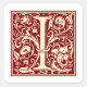 William Morris Letter I Monogram Initial Red Quadratischer Aufkleber