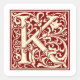 William Morris Letter K Monogram Initial Red Quadratischer Aufkleber