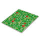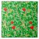 Die Tile in einem William Morris Art Nouveau Textilmuster aus lykischen Ästen und Blätter, in Limonen und tiefgrünen Farbtönen, mit roten Lychefrüchten und gelben Blüten, auf einem hellgrünen Hintergrund