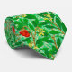 Krawatte im William Morris Art Nouveau Textilmuster von lychischen Ästen und Blätter, in Limonen und tiefgrünen Farbtönen, mit roten Lychefrüchten und gelben Blüten, auf hellgrünem Hintergrund