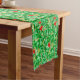 Tischläufer im William Morris Art Nouveau Textilmuster aus lychischen Ästen und Blätter, in Limonen und tiefgrünen Farbtönen, mit roten Lychefrüchten und gelben Blüten, auf hellgrünem Hintergrund