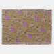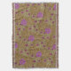 Im Vintagen William Morris, Jugendstil, riesiger Damast-Druck von Blätter und Blume, digital verstärkt und farbig, in hellbraunen und beigen Tönen, violett lila und rosa, auf dunkelschokoladenbraunem Hintergrund
