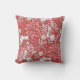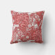 Kunst Nouveau, Kissen des Fantasieunterwasserblumenmusters im Freienvon der würdevollen Meerespflanze, vom Blätter und von den Blumen, basiert auf einem Vintagen Textilentwurf Williams Morris, digital erhöht und im weißen und korallenroten Rosa auf einem tiefen chinesischen roten Hintergrund gefärbt