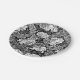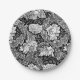 PapierTeller in einem Kunst Williams Morris Nouveau Textilmuster, digital erhöht und - stylized Pfingstrosen und Blätter in den Schatten des Lichtes zu mittlerem Grauem/zum Grau und zum Weiß gegen einen schwarzen Hintergrund gefärbt