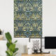 Panel mit dem Titel "Pfau und Drache". Phantastischer blauer mythischer Drache und Pfau - Vintages Muster des berühmten William Morris.