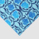 Gewebepapier in einem Vintagen William Morris textilen Muster aus stilisierten Pimpernell-Blume und Blätter - Blume in einem Farbverlauf von hell bis dunkelblau auf pastellblauem Hintergrund