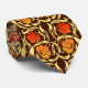 Krawatte in einem Vintagen William Morris Textilmuster aus stilisierten Blume und Blätter aus Pimnell - Blume in einem Gefälle von Rost-Orange bis Gold, mit hellen Gämse-gelben Blätter, auf einem dunkelschokoladenbraunen Hintergrund
