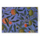 William Morris Pomegranate Wallpaper Pattern, Blue Fruit - Dieses Blumendesign ist ein sehr farbenfrohes Tapetenmuster, das 1865-66 von dem berühmten Tapeten-Designer William Morris entworfen wurde. Die botanische Schrift hat einen hellblauen Hintergrund und grün-rote Granatapfelatapfel schlängeln sich durch das Design. Grüne Blätter und Stiele blühen auf der Seite des Blumendrucks.
