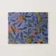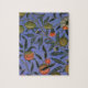William Morris Pomegranate Wallpaper Pattern, Blue Fruit - Dieses Blumendesign ist ein sehr farbenfrohes Tapetenmuster, das 1865-66 von dem berühmten Tapeten-Designer William Morris entworfen wurde. Die botanische Schrift hat einen hellblauen Hintergrund und grün-rote Granatapfelatapfel schlängeln sich durch das Design. Grüne Blätter und Stiele blühen auf der Seite des Blumendrucks.