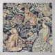 Die Forest Tapestry (Detail) von William Morris, 1887. Die Tapisserie umfasst einen Fuchs, einen Raben, einen Löwen und einen Pfau.