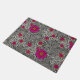Fußmatte in einem Vintagen William Morris, Kunst Nouveau, Ringelblumendamastdruck des Blätter und der Blumen, digital erhöht und, in den Schatten von Grauem/von Grauem gefärbt und Weiß, betont mit pinkfarbener rosa und korallenroter Orange, auf einem dunklen Graphitgrauhintergrund