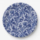 Papier-Teller in einem Vintagen William-Morris-Damast-Muster von Blume und Blätter, in tiefblauem Kobaltblau, auf weißem Hintergrund, digital verbessert und farbig
