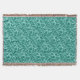 Decken in einem Vintagen William-Morris-Damast-Muster aus dickflüssigen Blume und Blätter in Türkis/Pfauenblau, auf einem hellen Aquarellhintergrund, digital verbessert und farbig