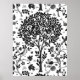 Das Poster im William Morris Art Nouveau ist ein traditionelles "Baum des Lebens" mit Fantasy-Bäumen, umgeben von Ästen mit exotischen Blume und Vögeln, schwarz und grau/grau, auf weißem Hintergrund