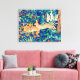 Canvas drucken in einer William Morris Illustration zweier Hasen, die durch einen wilden Wald laufen - digital verbessert und farbig
