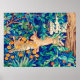 Poster in einer William Morris-Illustration zweier Hasen, die durch eine wilde Waldlandschaft laufen - digital verbessert und farbig
