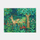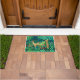 Doormat in einem William Morris Tapestry-Design von Hirsch in einem fantasievollen Waldgebiet - bräunliches Hirsch in einem üppig blauen und grünen Hintergrund von Blätter und Blume, mit roten Tulpen