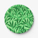 Papier Teller in einem William Morris Art Nouveau Textilmuster aus stilisierten Weidenzweigen und Blätter in den Schattierungen von tiefschimmerndem Jadegrün auf einem helljade grünen Hintergrund