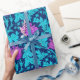 Verpackungspapier in einem Vintagen Blumendamastmuster Williams Morris der Anemonen-Blumen und -Blätter, digital erhöht und gefärbt - Türkis-/Pfaublau-Blätter und Blumen in den Schatten des magentaroten Rosas auf einem dunklen Marine-/Indigoblauhintergrund